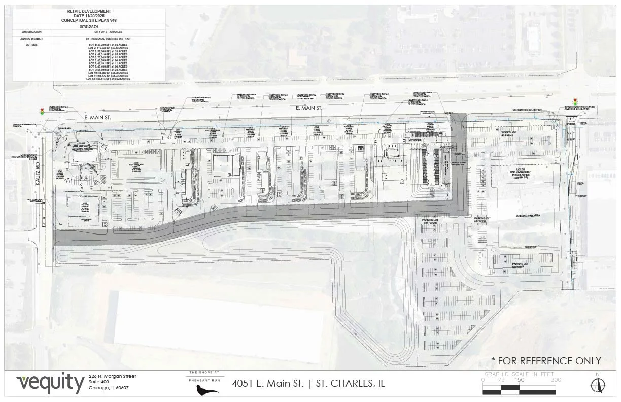 The Shops at Pheasant Run is a thoughtfully planned 30 acre retail and restaurant development designed to serve one of St. Charles’ most active and affluent trade areas. Positioned at a high-traffic, signalized intersection with strong visibility and access, the project offers flexible leasing opportunities for modern retail, dining, and service-oriented users in a proven commercial corridor.
